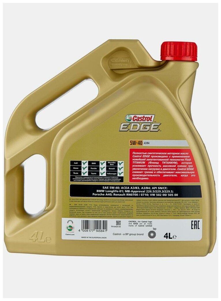 FIAT 9.55535-S2, Ford WSS-M2C 917-A, GM Dexos 2, GM-LL-A-025, GM-LL-B-025, MB 226.5, MB 229.31, MB 229.51, Renault RN 0700, Renault RN 0710, VW 505.00, VW 505.01, Renault RN 0700 / 0710