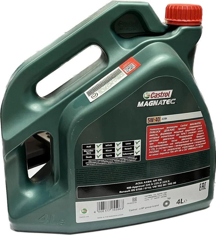 Description: SAE viscosity grade: 5W-40, oil type: semi-synthetic, synthetic, vehicle type: passenger cars, fuel type: gasoline, diesel, methane, diesel, gasoline, methane, API standard: CF, SL, SN, SN, CF, Standard ACEA: A3/B4, A3/B3, A3, A3/B4, A3, B4, B4