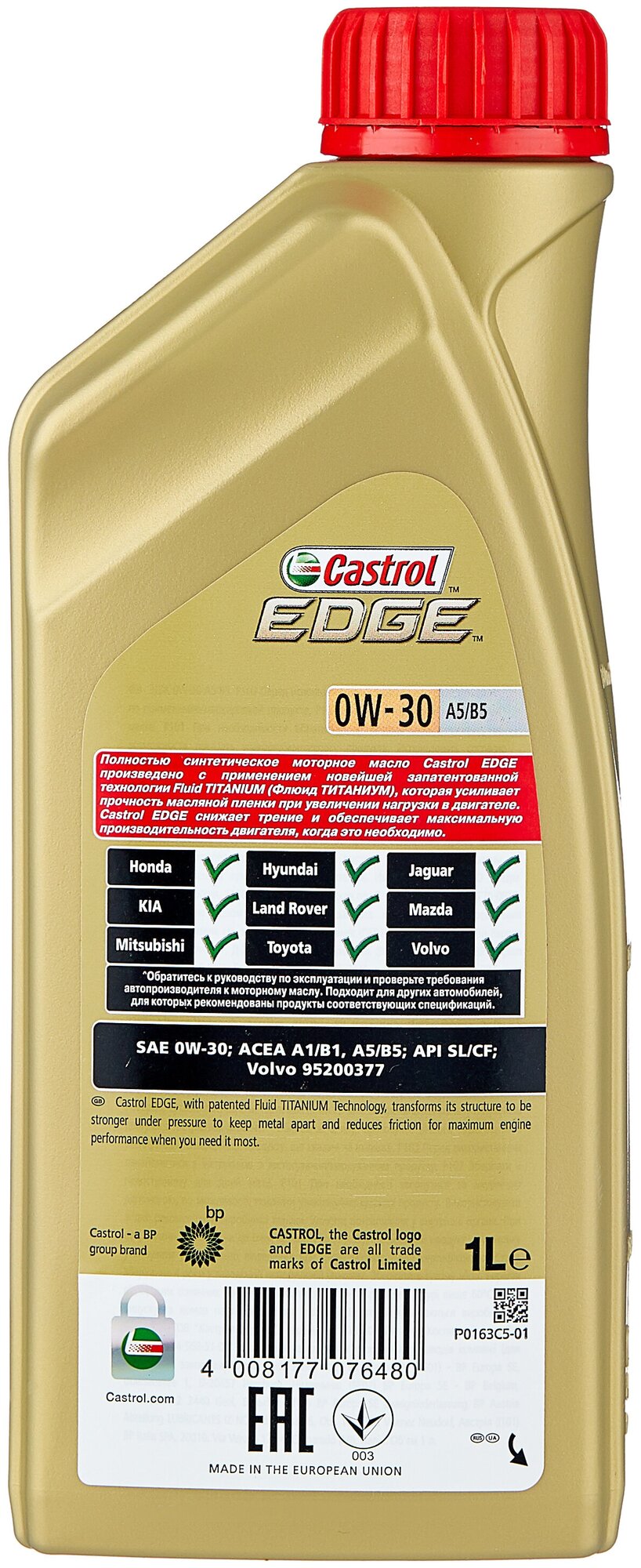 Description: SAE viscosity grade: 0W-30, oil type: synthetic, vehicle type: passenger cars, fuel type: gasoline, diesel, API standard: CF, SL, ACEA standard: A1/B1, A5/B5, A1, A5, B1, B5, OEM approvals: BMW Longlife-01, VW 502.00, VW 505.00, Volvo VCC 95200377, engine