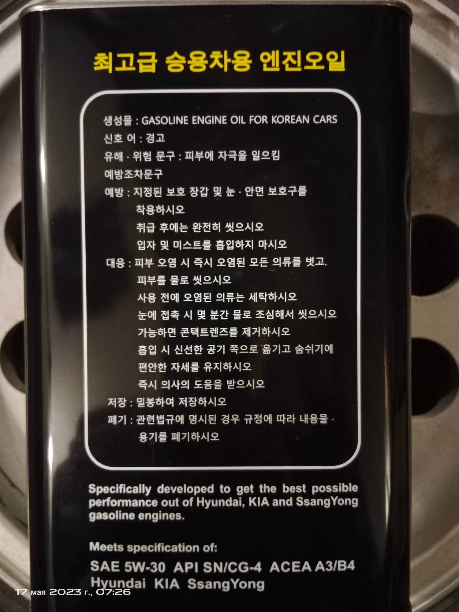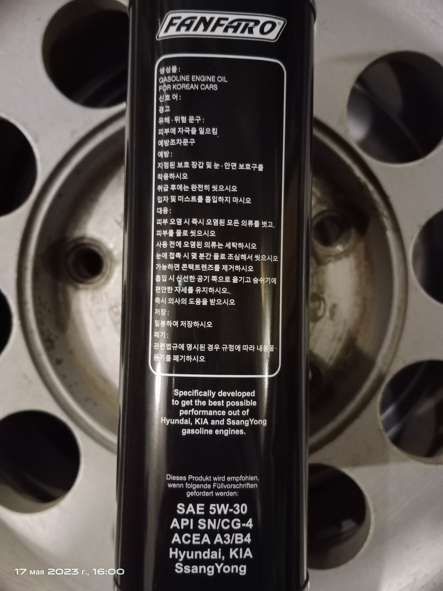 Hyundai Kia 5W-30 4L synth. w/w FF6714-4CME-I 05100-00441
