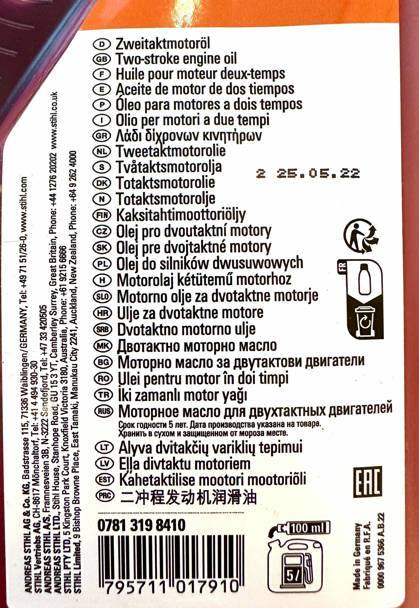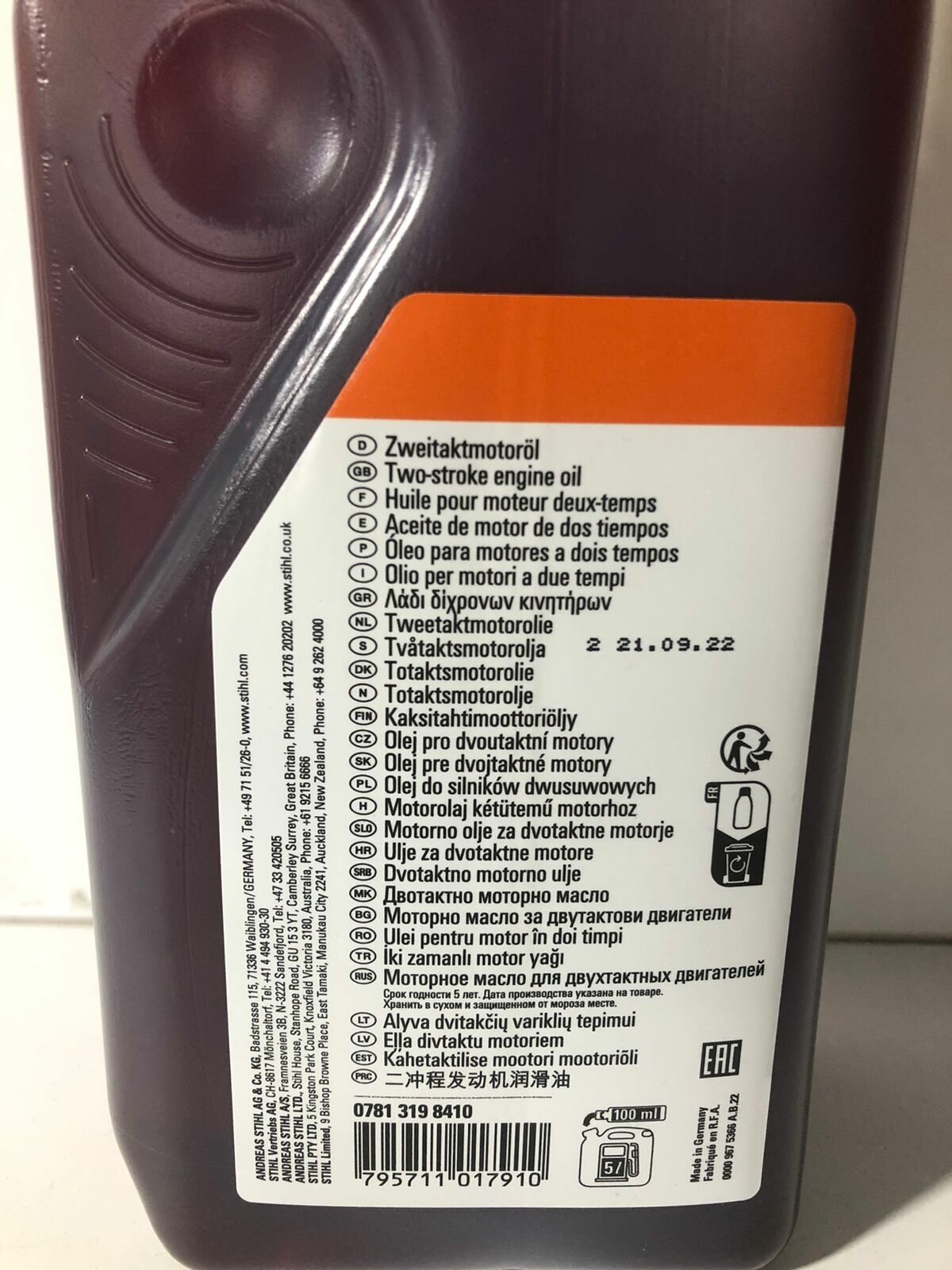 Product type: engine oil, engine: gasoline, engine type: 2-stroke, type: mineral, SAE viscosity grade: Not subject to SAE classification, seasonality: all-season, API standard: HP