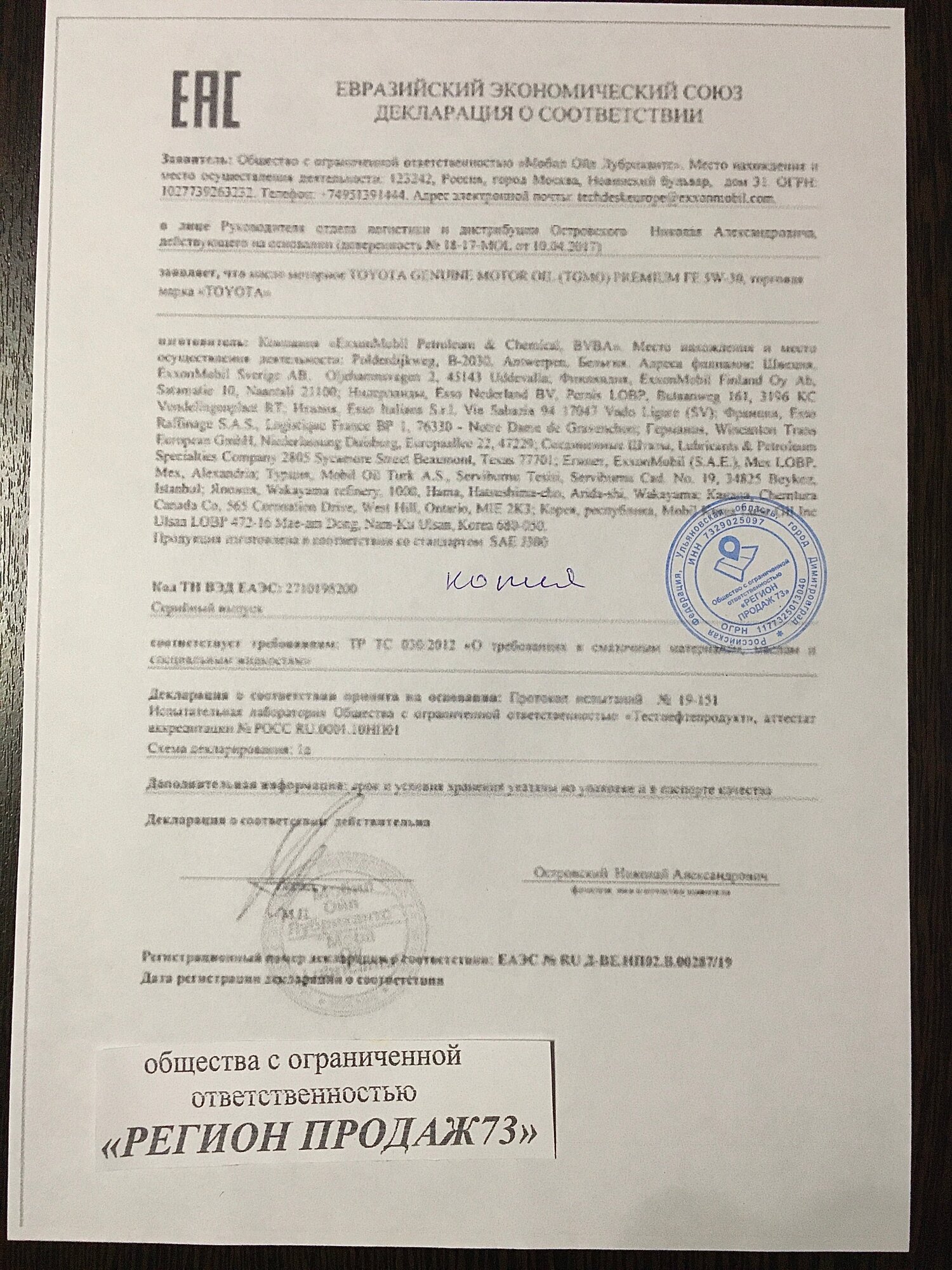 OEM Approvals: Acura HTO-06, Allison C4, Allison TES-439, BMW High Performance Diesel Oil, BMW Longlife- 01 FE, Ford ESN-M2C159-B, Ford M2C 134-D, GM Dexos 2, Honda, Honda HTO-06, Lexus, Lexus LFA Service Fill, ILSAC GF-6A, toyota