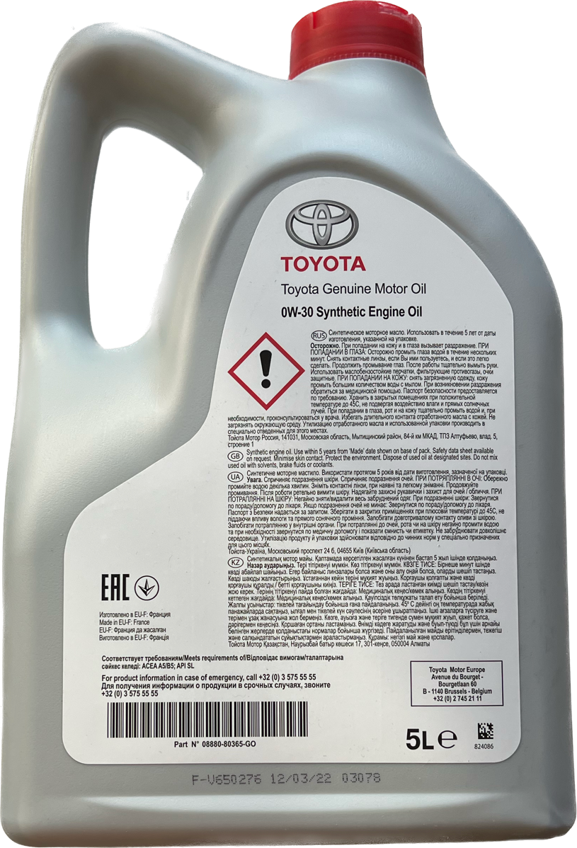Toyota Motor Oil 0W-30 5l synth. API SL/CF plastic. container