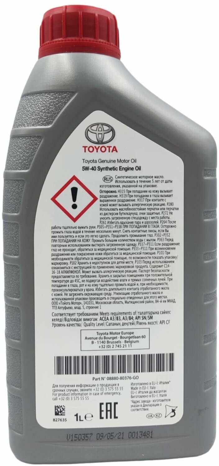 SAE viscosity grade: 5W-40, oil type: synthetic, fuel type: gasoline, diesel, Gas, API standard: SF, SM, SN, ACEA standard: A3/B4, A3/B3, A3, B3, B4, engine type : four stroke
