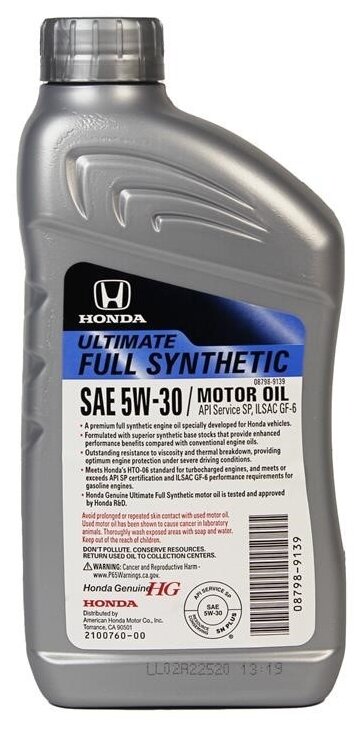 SAE viscosity grade: 5W-30, oil type: synthetic, vehicle type: passenger cars, fuel type: gasoline, API standard: SN, SP, engine type: four-stroke