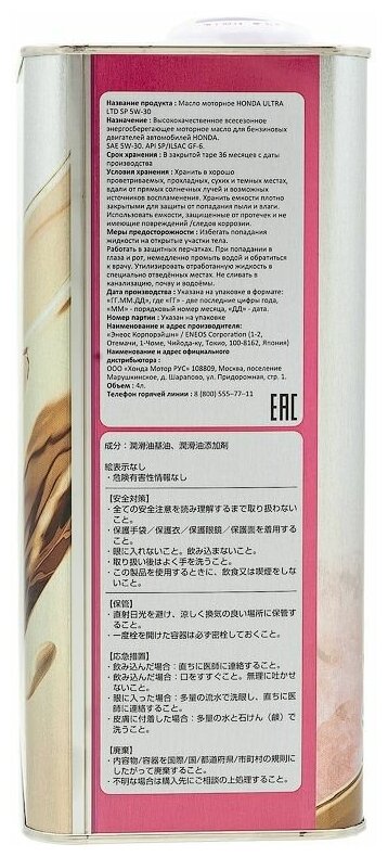 Motor oil HONDA ULTRA MOTOR OIL LTD 5W30 SP 4l
