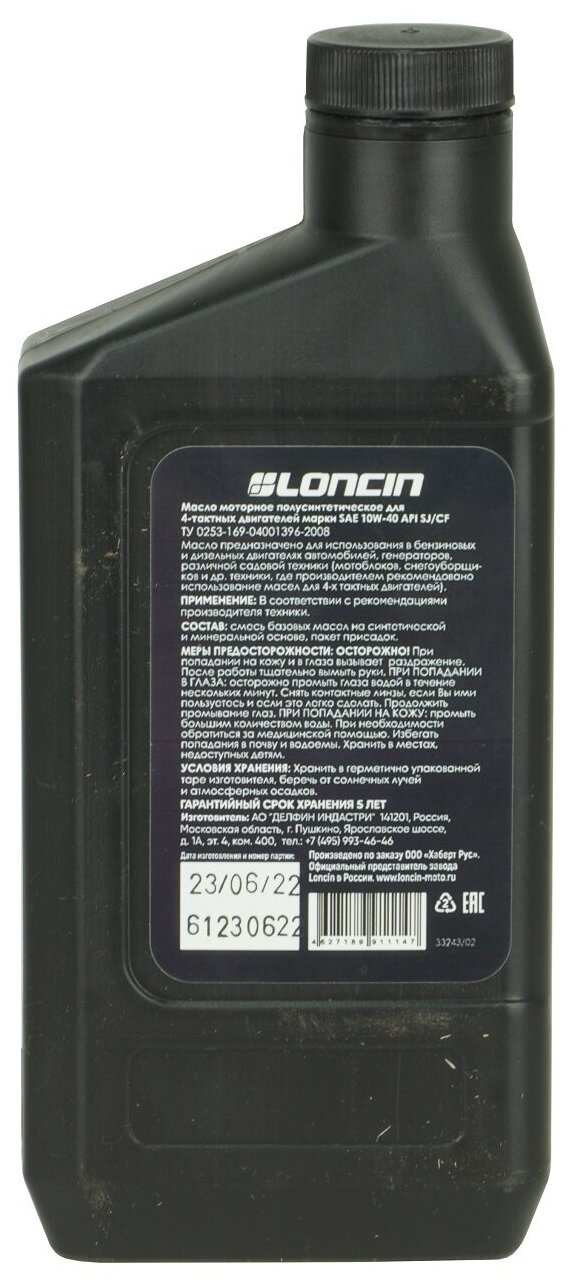 LONCIN 4T SAE 10W-40 API SJ/CF 1l semi-synthetic