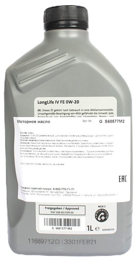 VAG 0W20 1L GS60577M2 longlife 4