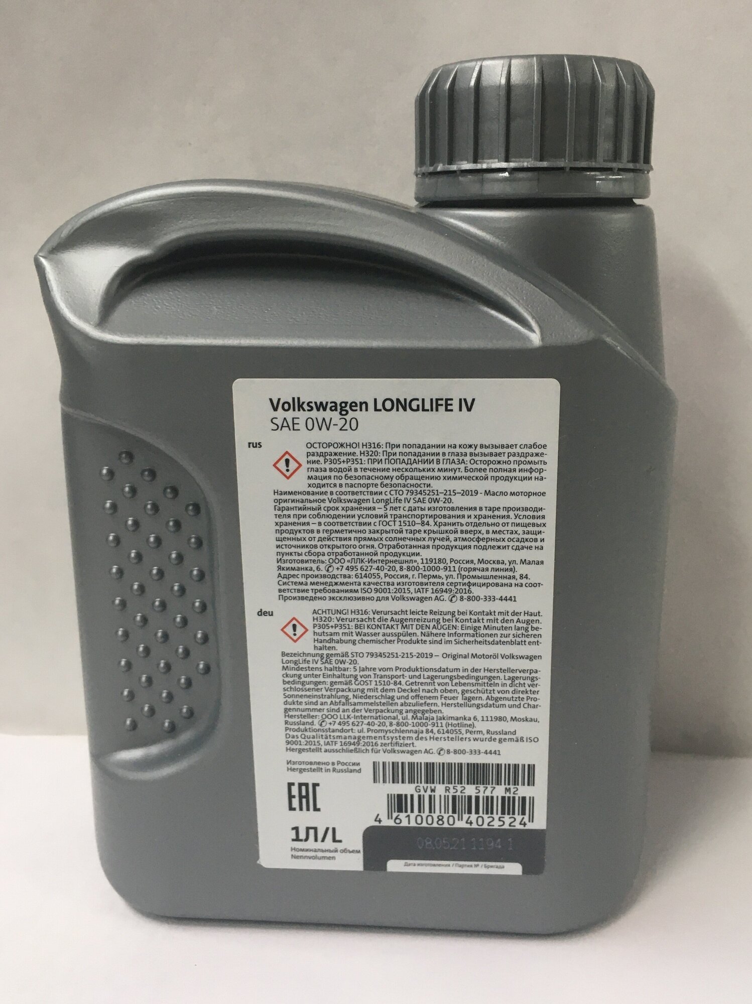 Synthetic Longlife IV 0W-20, 1l, VW VAG GR52577M2 Volkswagen