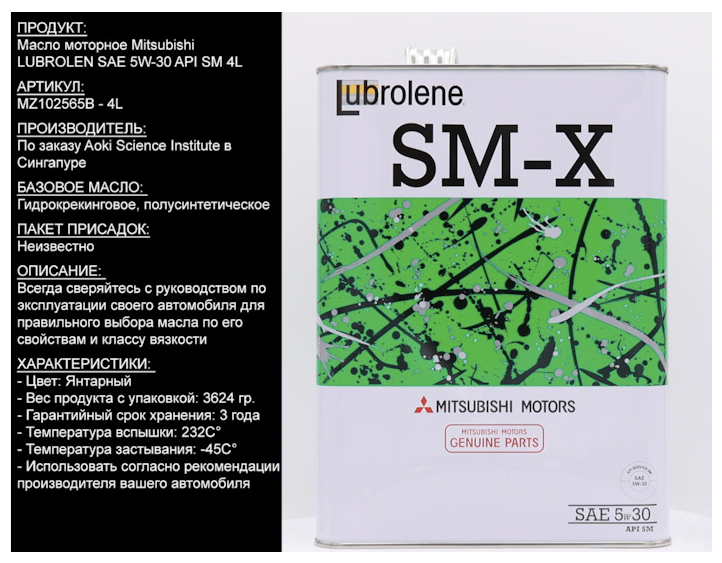 Semi-synthetic Lubrolene SM X API SM SAE 5W 30, 4 l MITSUBISHI KW5H1 08RE YH MZ102565B 1436784706 MITSUBISHI MZ102565B