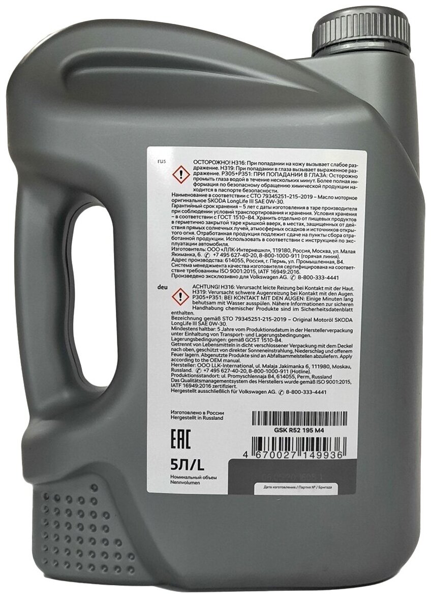 SAE viscosity grade: 5W-30, oil type: synthetic, vehicle type: passenger cars, engine type: four-stroke