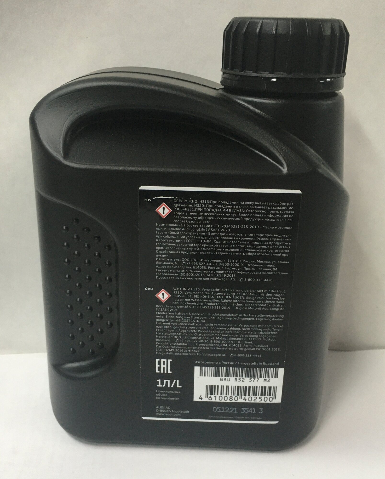 SAE viscosity grade: 0W-20, oil type: synthetic, fuel type: gasoline, diesel, OEM approvals: VW 508.00, VW 509.00, GAUR52577M2, VW 508 00, VW 509 00, engine type: four-stroke, for turbocharged engines