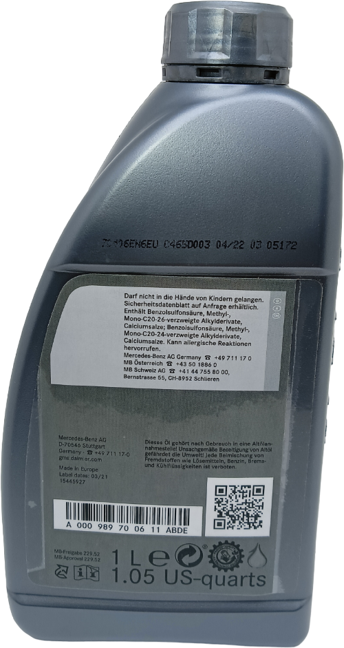 OEM Approvals: MB 229.51, MB 229.52, PORSCHE C30, VW 504.00, MB-Approval 229.52/226.5, NorMercA000989700611ABDE