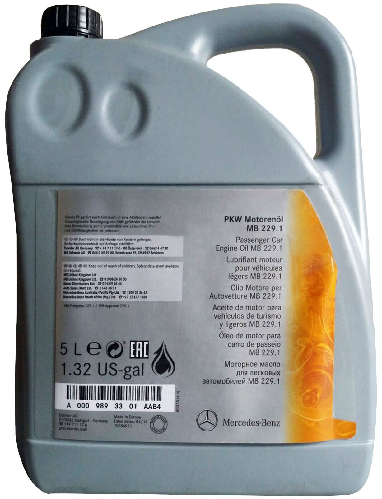 SAE viscosity grade: 10W-40, oil type: semi-synthetic, synthetic, OEM approvals: MB 229.1, engine type: four-stroke