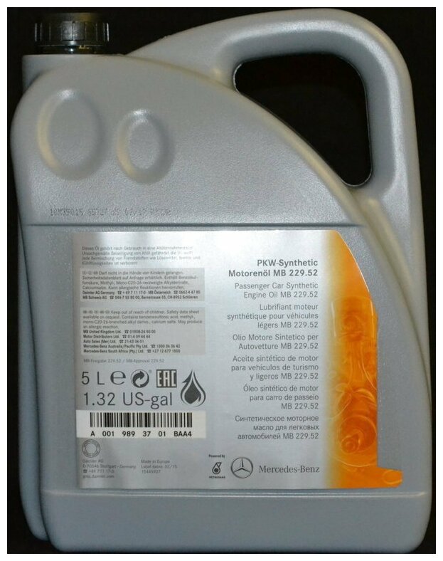 SAE viscosity grade: 5W-30, oil type: synthetic, fuel type: gasoline, diesel, OEM approvals: MB 229.51, MB 229.52, engine type: four-stroke