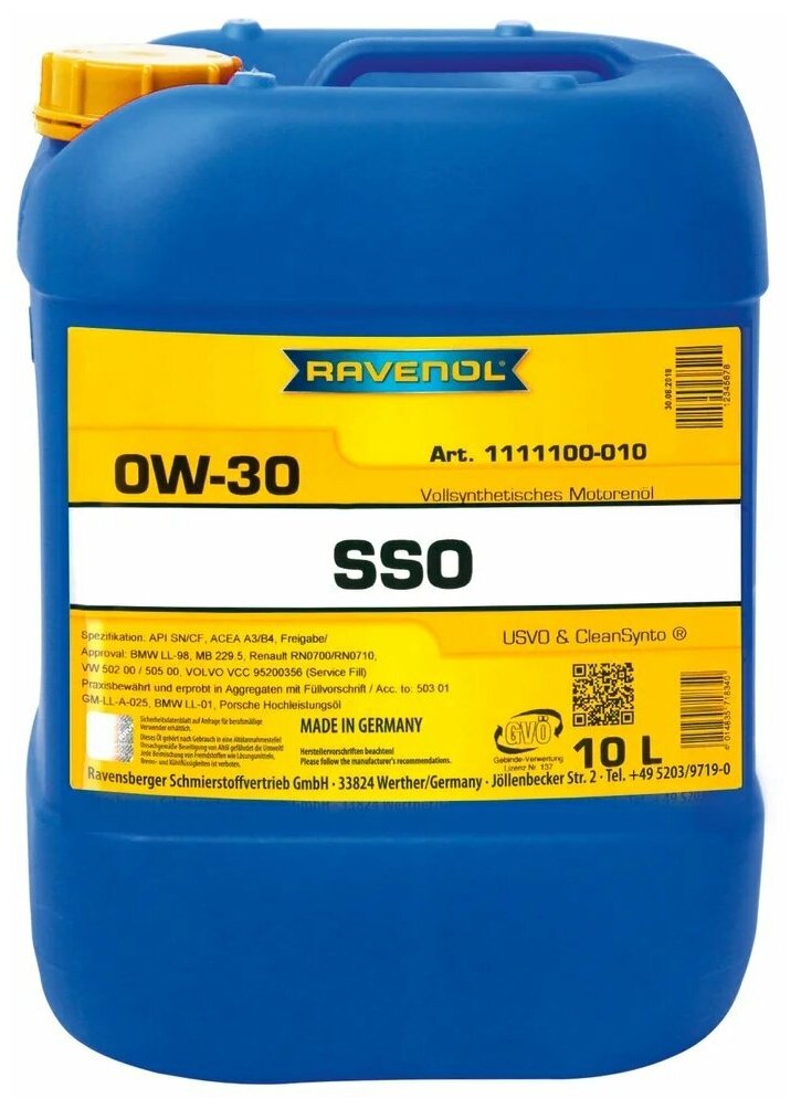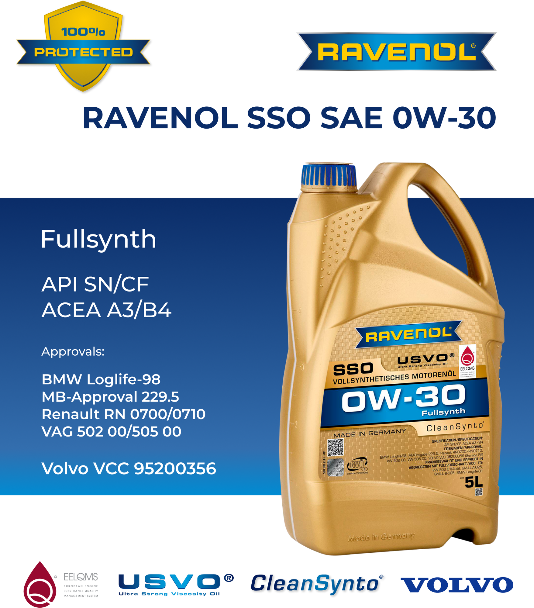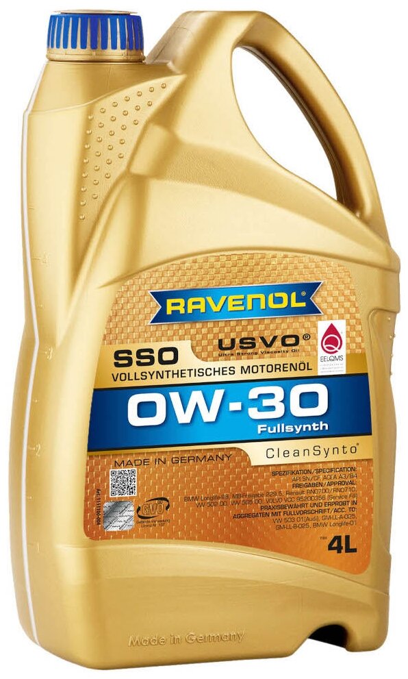 SAE viscosity grade: 0W-30, oil type: synthetic, vehicle type: passenger cars, fuel type: gasoline, diesel, API standard: CF, SN, CF,SN, ACEA standard: A3/B4, A3, B4, OEM approvals : BMW Longlife-01, BMW Longlife-98, MB 229.5, Renault RN 0700, Renault RN