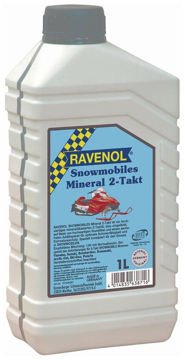 SAE viscosity grade: Not subject to SAE classification, oil type: mineral, synthetic, vehicle type: snowmobiles, fuel type: gasoline, API standard: TC, engine type: two-stroke