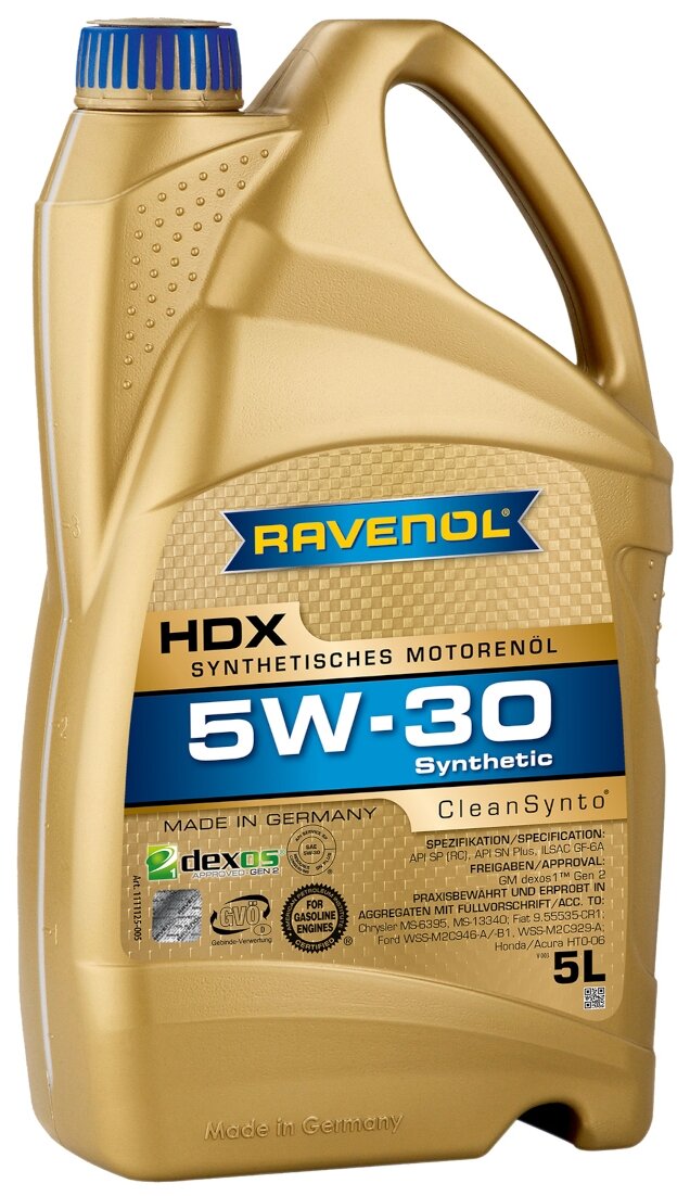 SAE viscosity grade: 5W-30, oil type: synthetic, vehicle type: passenger cars, fuel type: gasoline, diesel, API standard: SN, SN+, SP, SP-RC, RC, OEM approvals: Acura HTO-06, Chrysler MS-6395, Ford WSS-M2C 929-A, Ford WSS-M2C 946-A, Ford WSS-M2C 946-B1, H