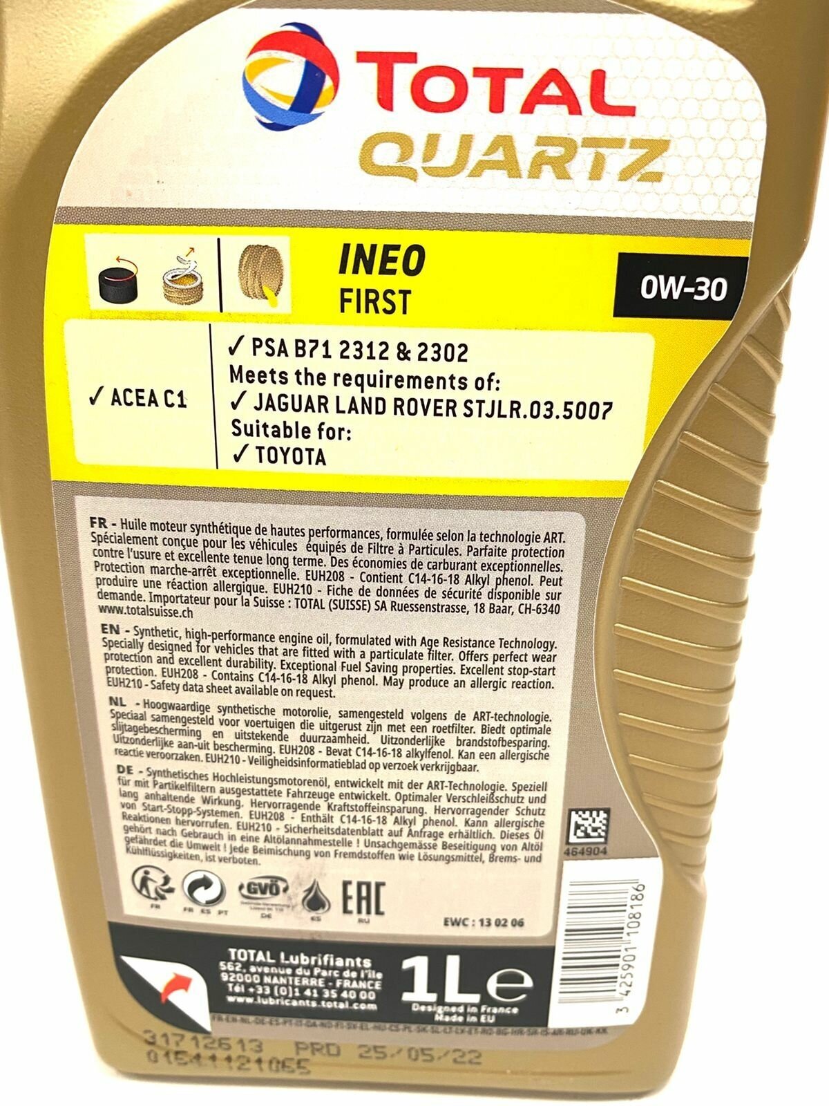 Description: SAE viscosity grade: 0W-30, oil type: semi-synthetic, synthetic, vehicle type: passenger cars, fuel type: gasoline, diesel, Gas, API standard: CF, SL, ACEA standard: C1, C2, C2, OEM approvals: Land Rover - ST JLR.03.5007, PSA B71 2302, PSA B71 2312, STJL