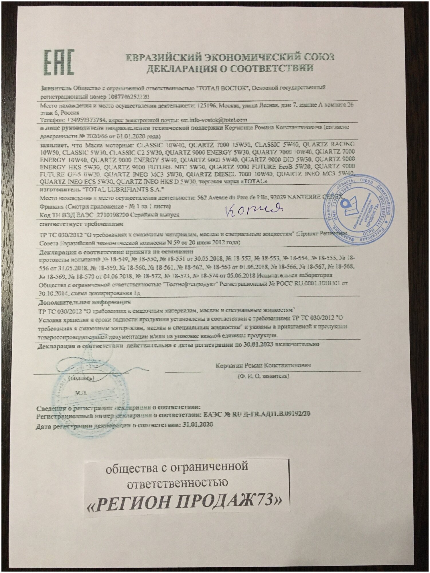 Additional Information: Viscosity index 170; pour point: -36°C; Flash point: 230°C