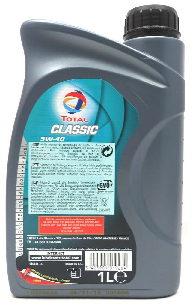 SAE viscosity grade: 5W-40, oil type: semi-synthetic, synthetic, vehicle type: passenger cars, API standard: CF, SL, engine type: four-stroke, for turbocharged engines