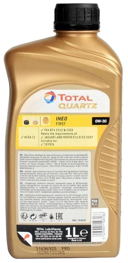 Total Quartz Ineo First 0w30 1l Replacement Part Number 183103
