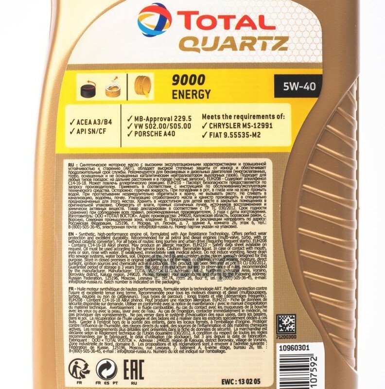 SAE viscosity grade: 5W-40, oil type: synthetic, vehicle type: passenger cars, fuel type: gasoline, diesel, Gas, Hybrid, API standard: CF, SN, ACEA standard: A3/B4, A3, A3/B4, B4, OEM approvals: Chrysler MS 12991, FIAT 9.55535-M2, MB 229.5, MB 229.51, POR