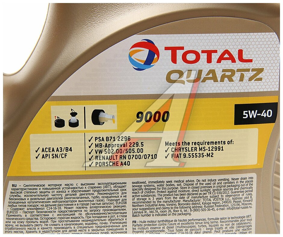 FIAT 9.55535-M2, MB 229.3, MB 229.5, PORSCHE A40, VW 502.00/505.00, Chrysler MS-12991, Peugeot/Citroen Automobiles B71 2296, RN 0700/0710