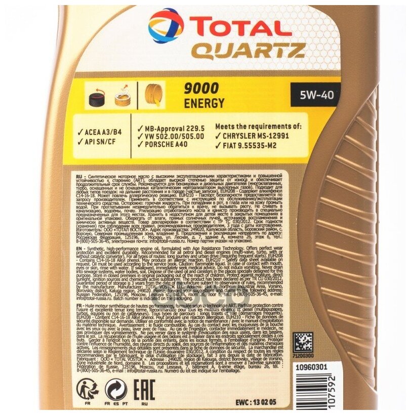 Total QUARTZ 9000 ENERGY 5W-40 Synthetic 1 l