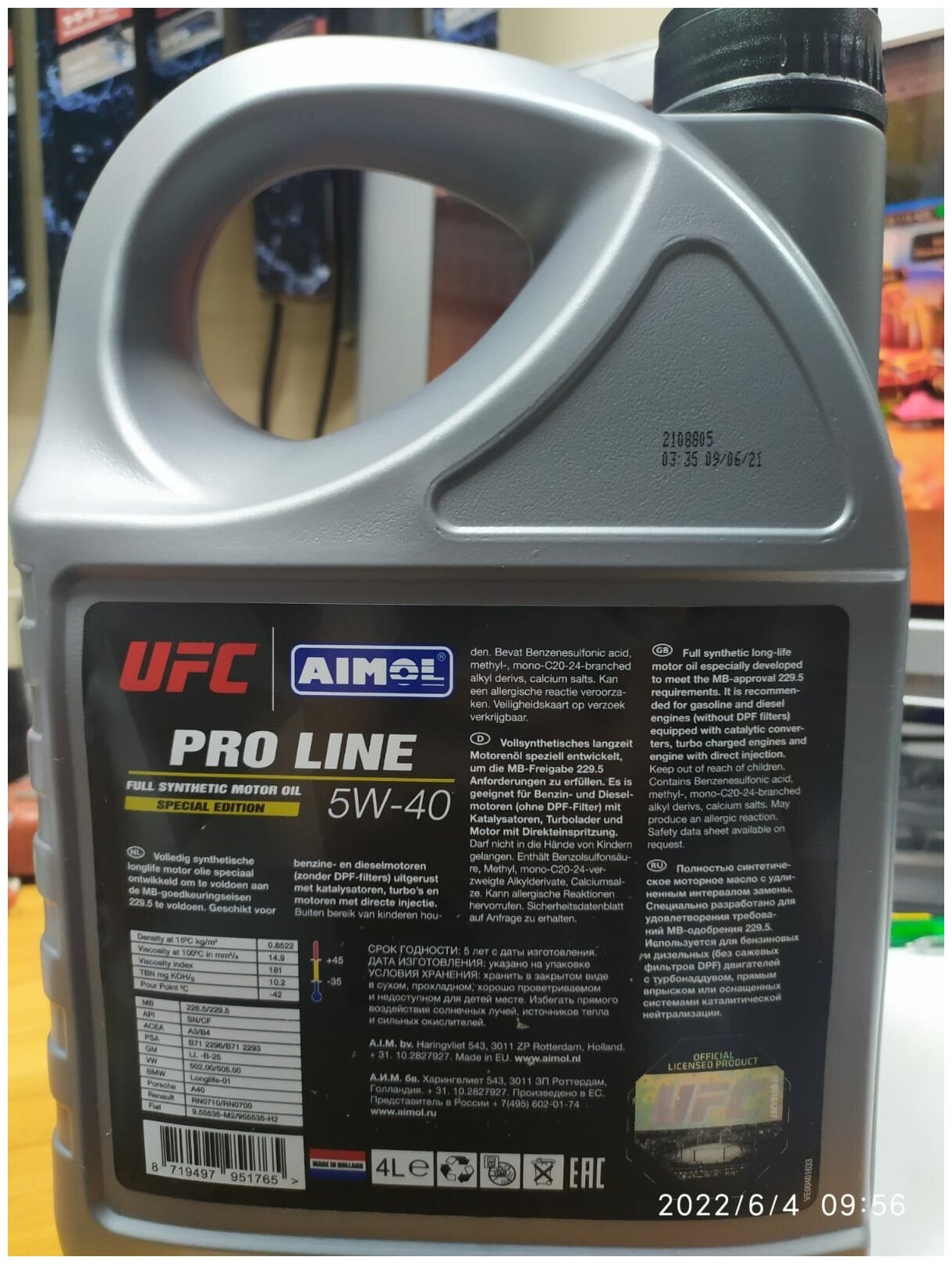 Special approval of automakers: Volkswagen: 502.00, 505.00; Mercedes-Benz: 229.5, 226.5; BMW: Longlife-01; PSA: B71 2296, PSA B71 2293; Porsche: A40; Renault: RN0710, RN0700; GM-LL-B-025; Fiat: 9.55535-M2, 9.55535-H2