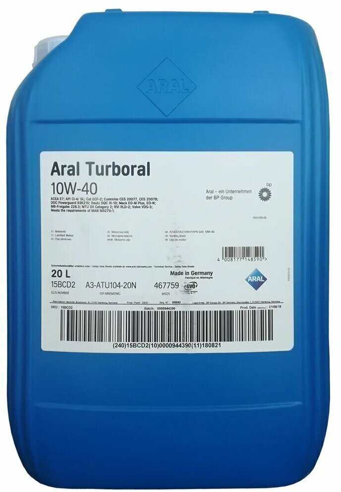 SAE viscosity grade: 10W-40, oil type: semi-synthetic, synthetic, vehicle type: trucks and special equipment, passenger cars, API standard: CH-4, SJ, engine type: four-stroke, for turbocharged engines
