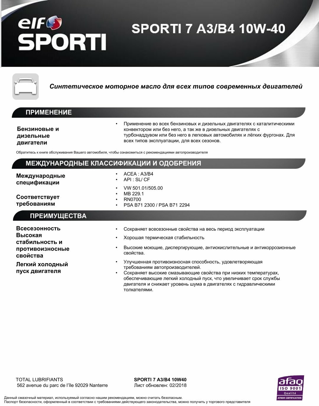 VW 501.01/505.00 MB 229.1 RN0700 PSA B71 2300 / PSA B71 2294