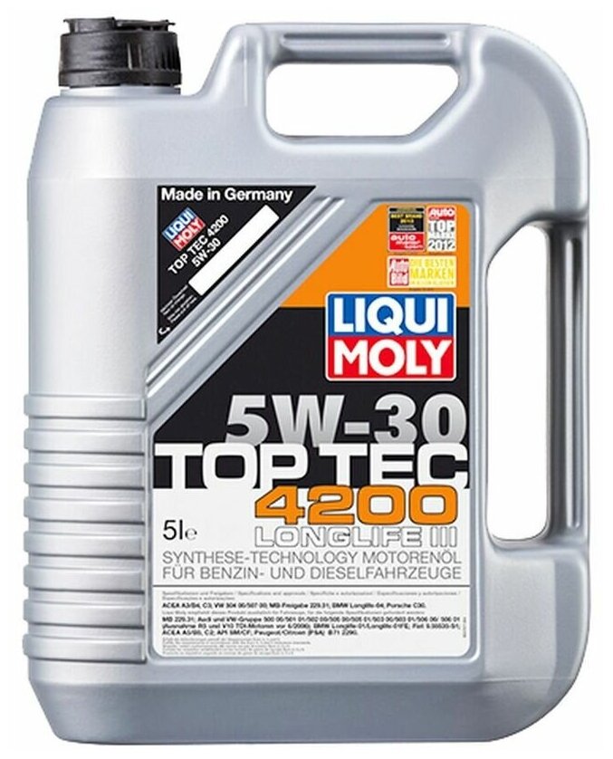 SAE viscosity grade: 5W-30, oil type: synthetic, HC-synthetic, fuel type: gasoline, API standard: SL, ACEA standard: A3, B4, engine type: four-stroke