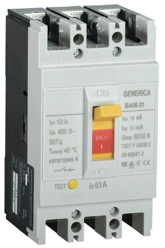 Automatic 3p 63A 18kA VA66-31 GENERICA IEK SAV10-3-0063-G, 1pc