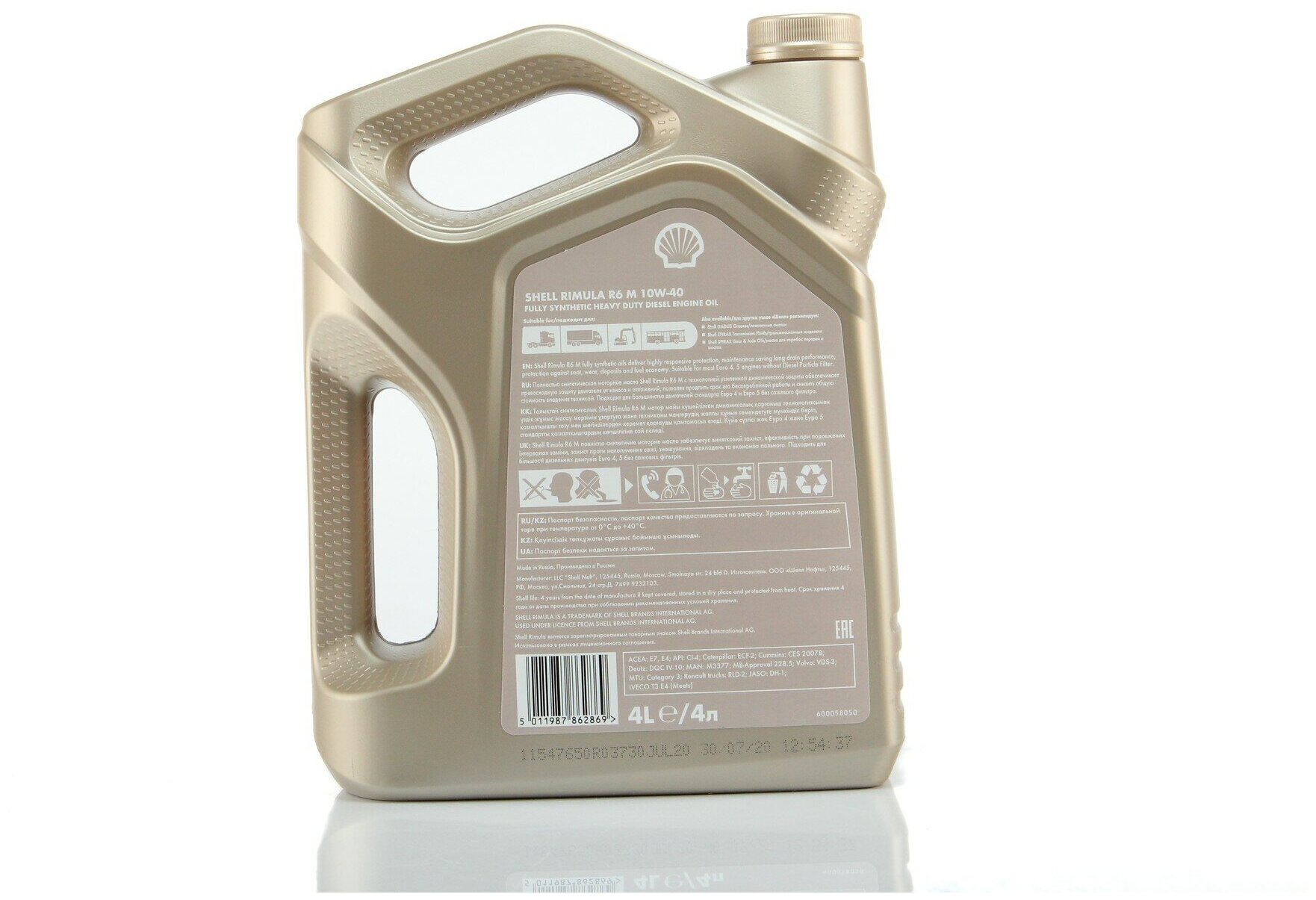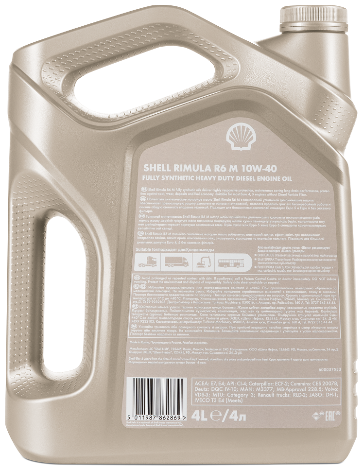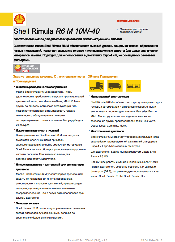 SAE viscosity grade: 10W-40, oil type: synthetic, fuel type: gasoline, diesel, API standard: CI-4, ACEA standard: E4, E7, OEM approvals: Caterpillar ECF-2, Cummins CES 20078, Deutz DQC IV- 10, Iveco, MAN M3377, MB 228.5, MTU Typ 3, Renault RLD-2, Volvo VD