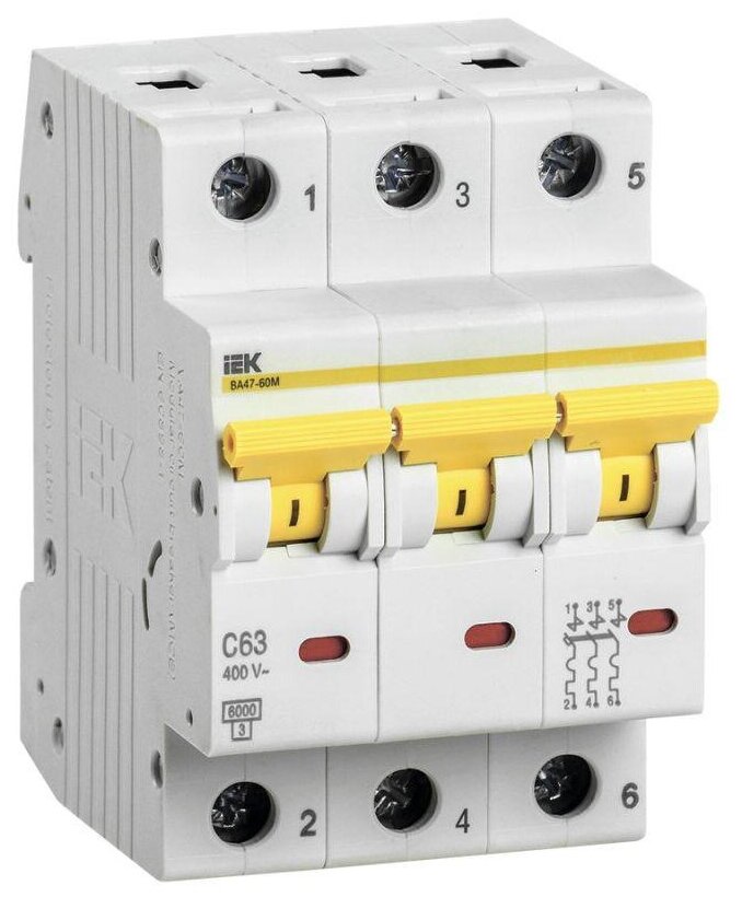 Automatic modular 3p C 63A 6kA VA47-60M IEC MVA31-3-063-C, 1 pc