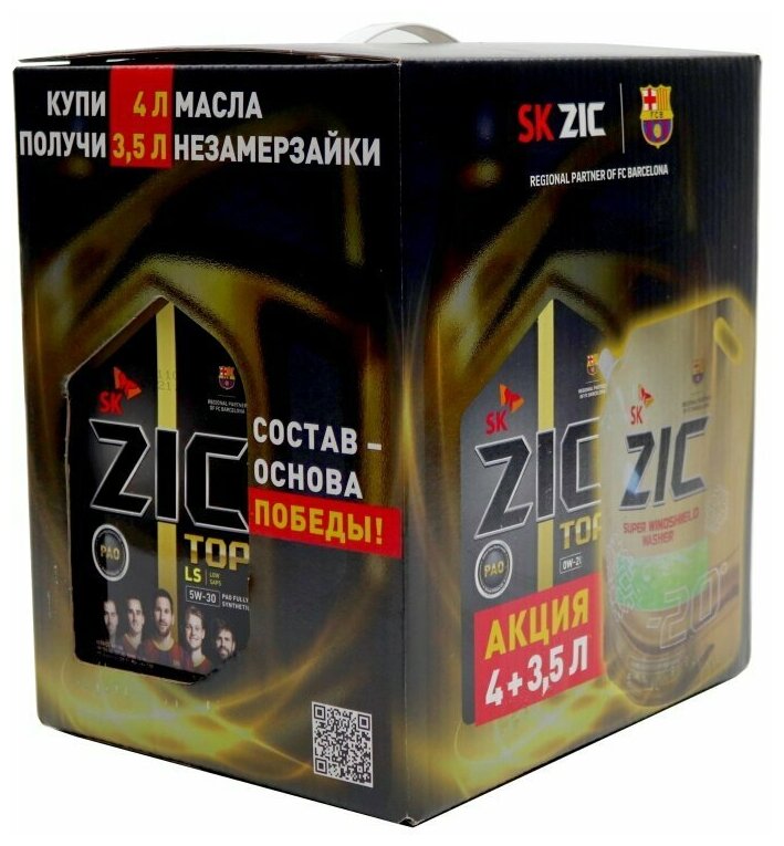 ZIC TOP LS 5w30, synthetic, API SN, ACEA C3, universal, 4l + antifreeze ZIC Super Windshield Washer, -20°C, 3.5l, promo set