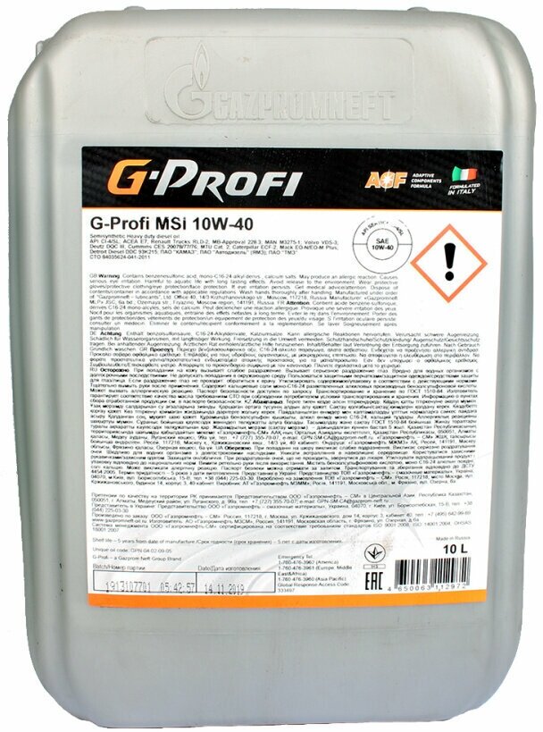 Description: SAE viscosity grade: 10W-40, oil type: semi-synthetic, vehicle type: trucks and special equipment, fuel type: gasoline, diesel, API standard: CI-4, GL-4, SL, ACEA standard: E7, E7, OEM approvals : Caterpillar ECF-2, Cummins CES 20076, Cummins CES 20077, C