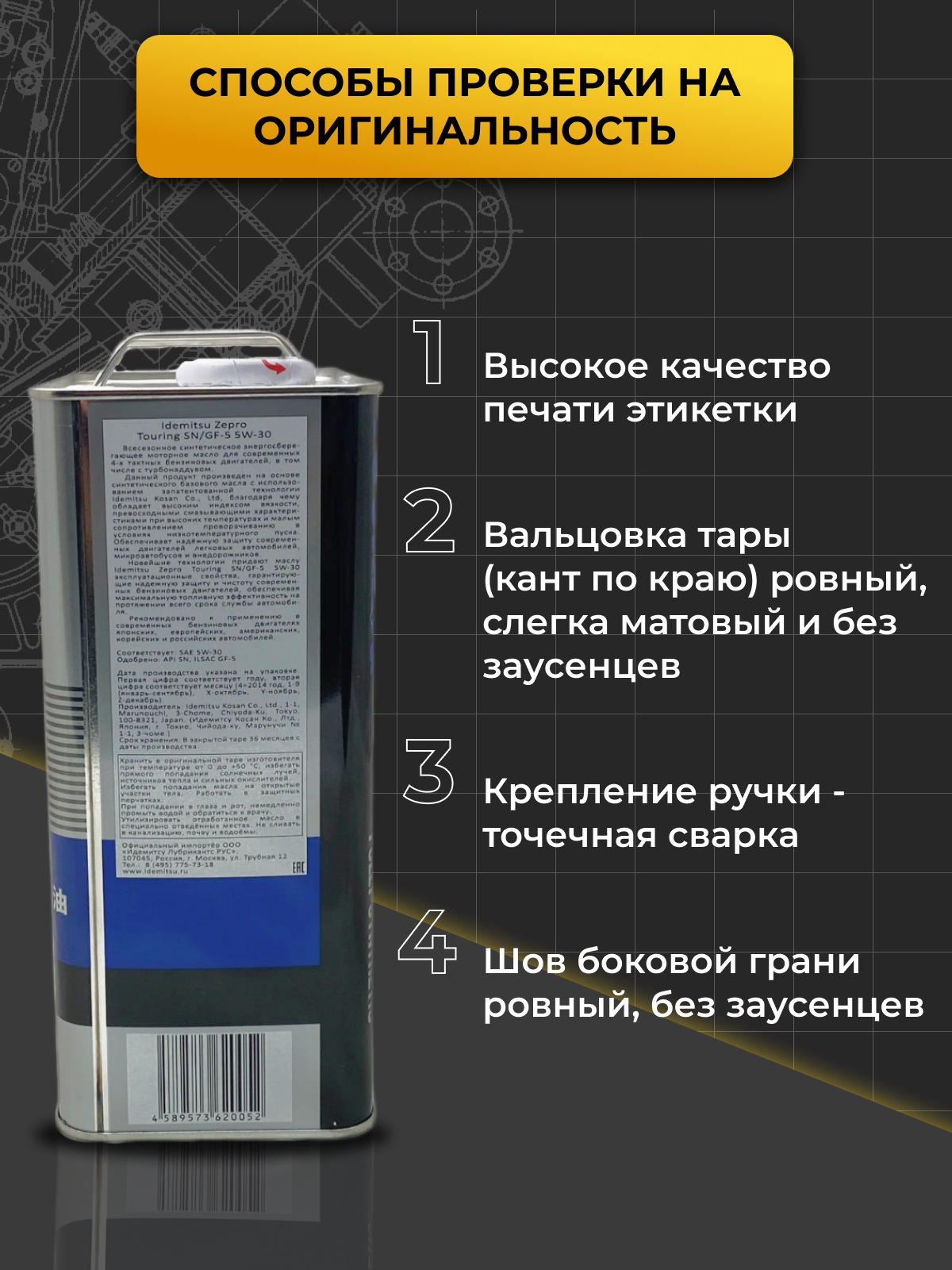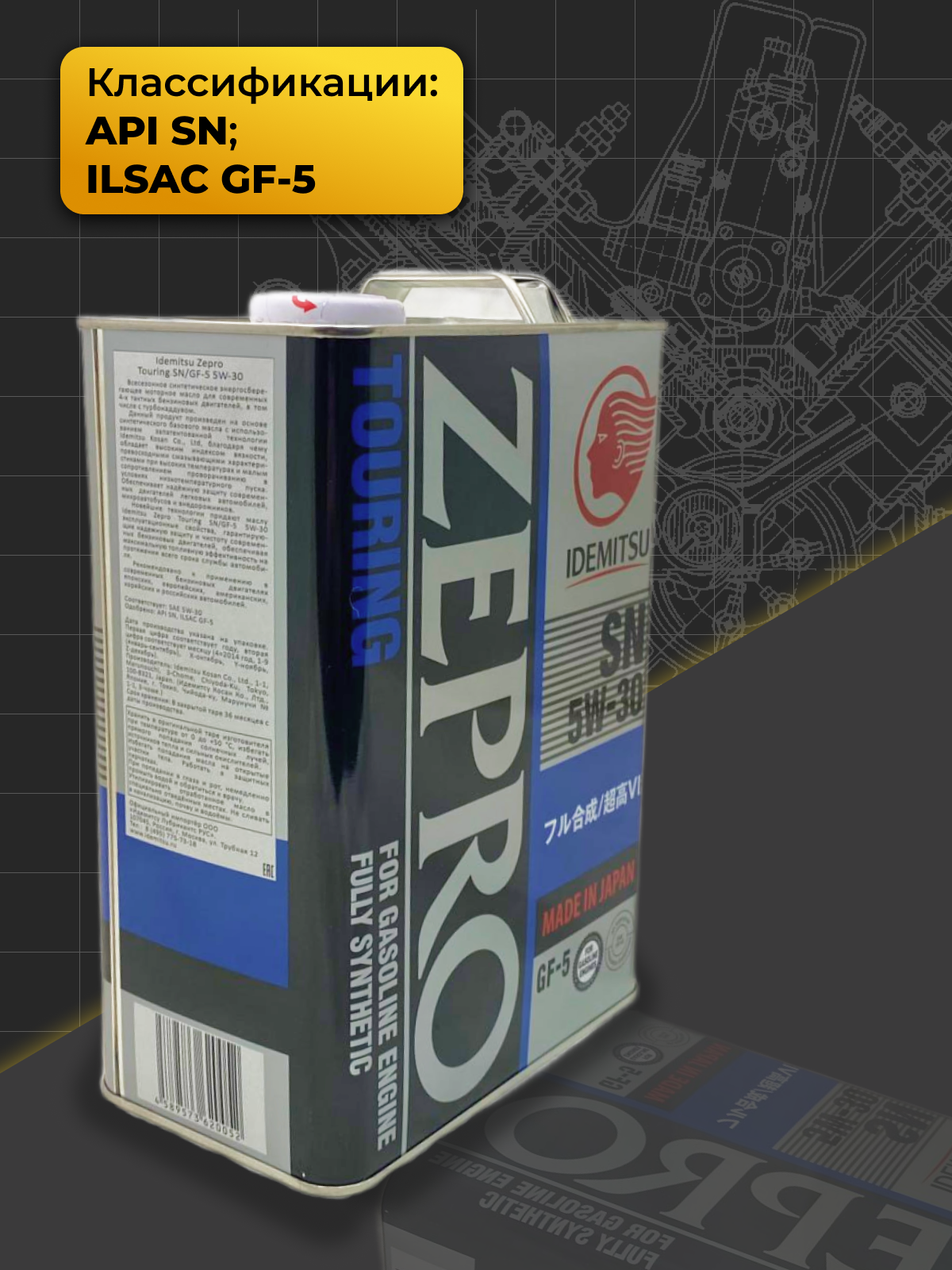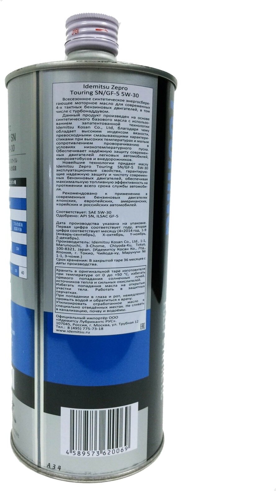 SAE viscosity grade: 5W-30, oil type: synthetic, Synthetic all-season, vehicle type: passenger cars, fuel type: gasoline, diesel, methane, API standard: CF, GF-5, SN, ACEA standard: A3/B4, A3 , A5, OEM approvals: VW 502.00/505.00, ILSAC GF-5, ty