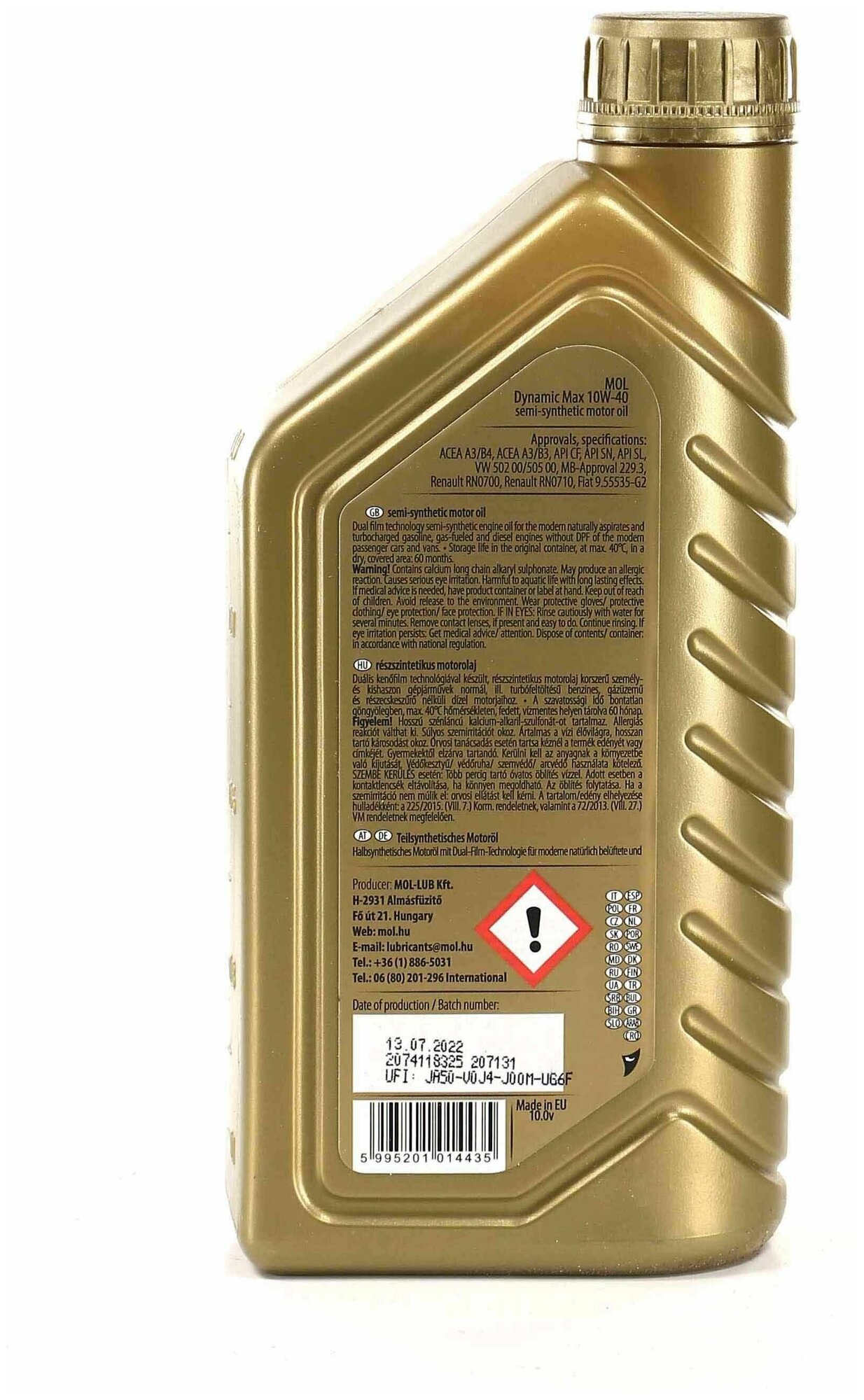 SAE viscosity grade: 10W-40, oil type: semi-synthetic, synthetic, vehicle type: passenger cars, fuel type: gasoline, diesel, API standard: CF, SL, SN, ACEA standard: A3/B4, A3/B3, A3, B3, B4, OEM approvals: FIAT 9.55535-G2, VW 502.00/505.00, MB-Approval 2