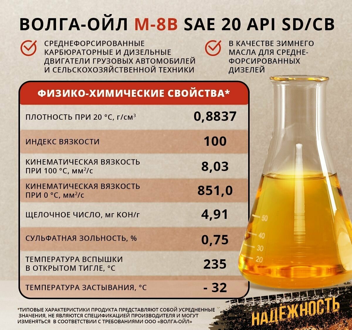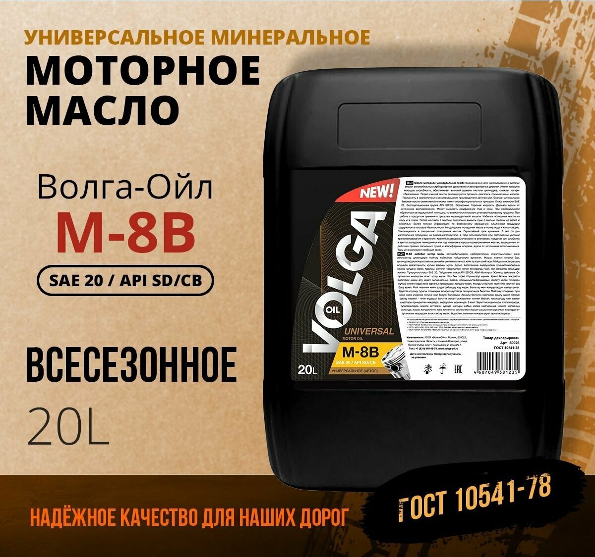 SAE viscosity grade: 20, oil type: mineral, mineral, all-season, vehicle type: trucks and special equipment, passenger cars, fuel type: gasoline, diesel, API standard: CB, SD, engine type: four-stroke