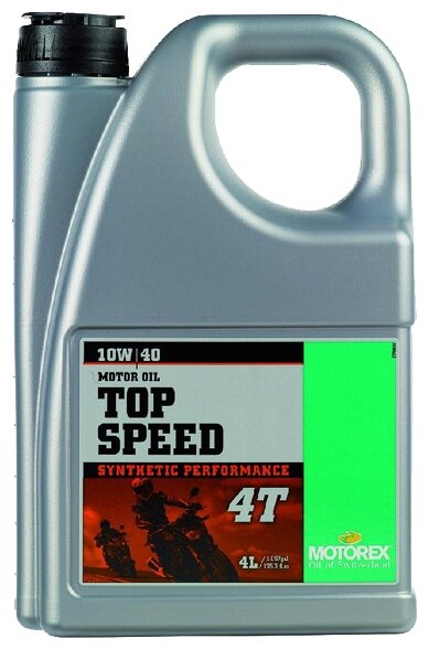 SAE viscosity grade: 10W-40, oil type: synthetic, vehicle type: motorcycle, fuel type: gasoline, API standard: SL, SM, SN, engine type: four-stroke