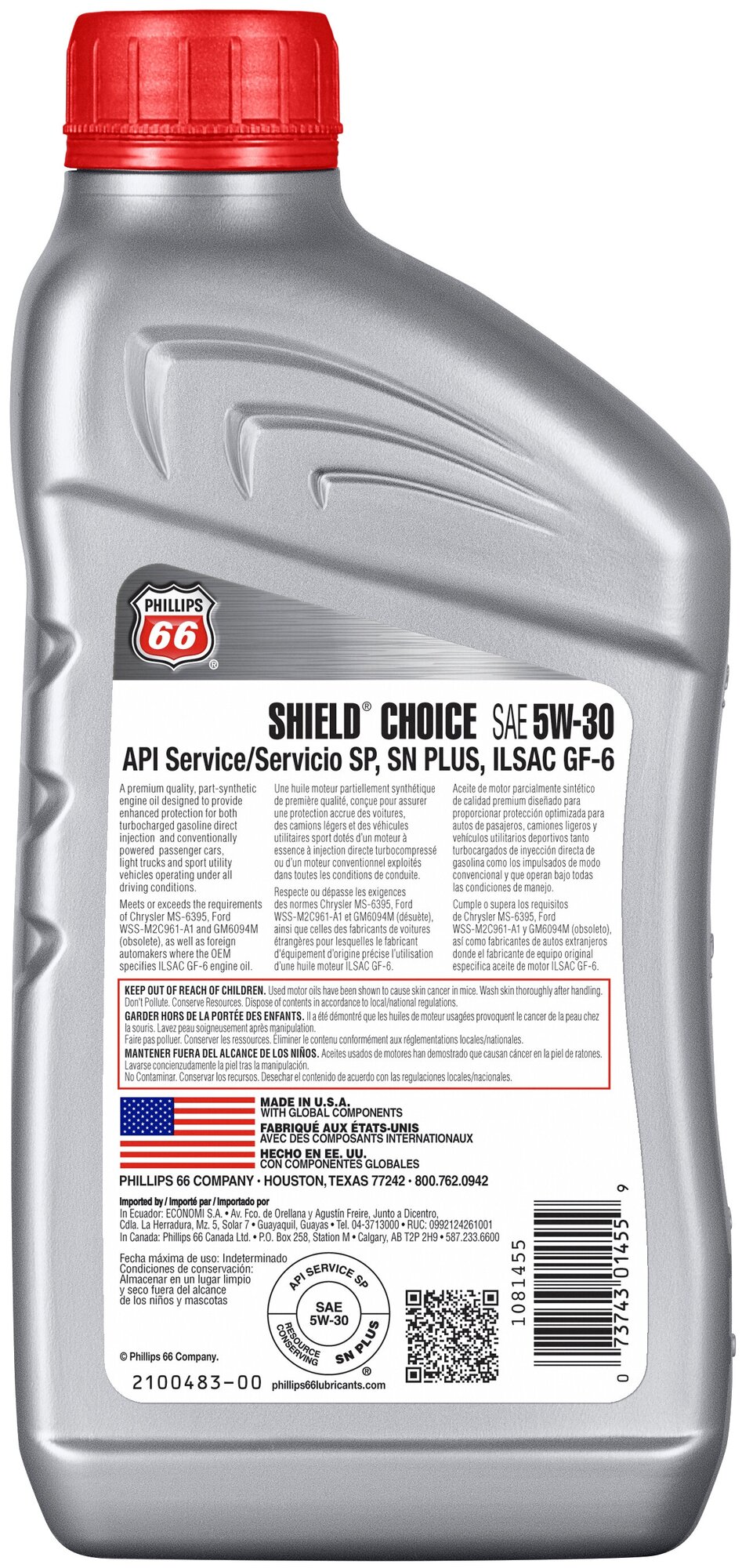 Phillips66 Shield Choice Synthetic Motor Oil 5W-30