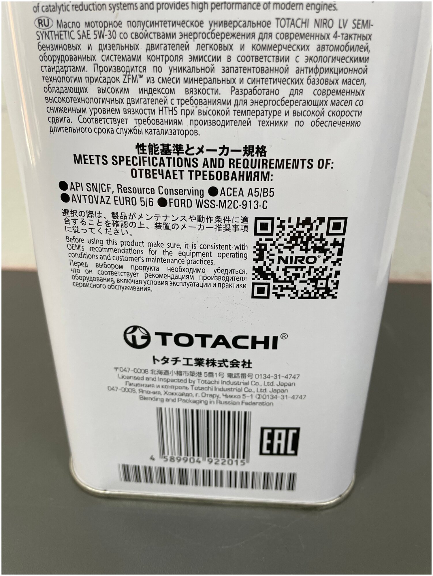 Totachi NIRO LV 5W-30 4L p/synth. API SN/CF