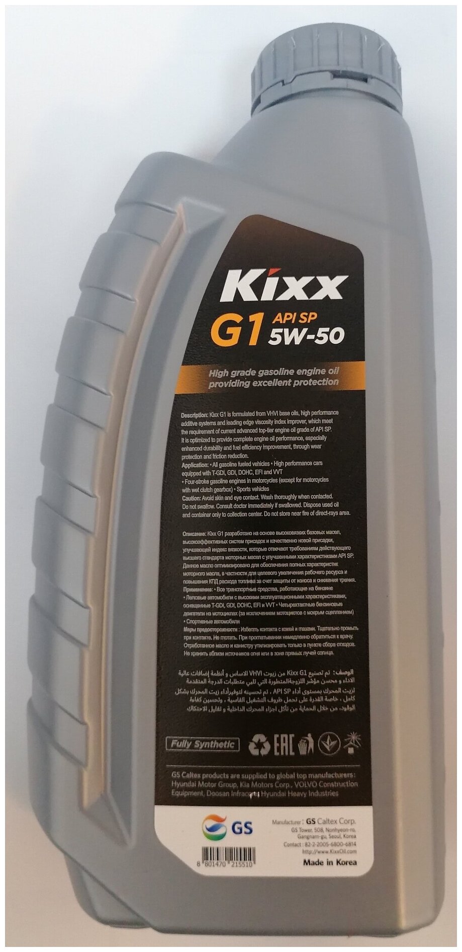 SAE viscosity grade: 5W-50, oil type: synthetic, fuel type: gasoline, diesel, Gas, API standard: SN, SN+, SP, RC, engine type: four-stroke