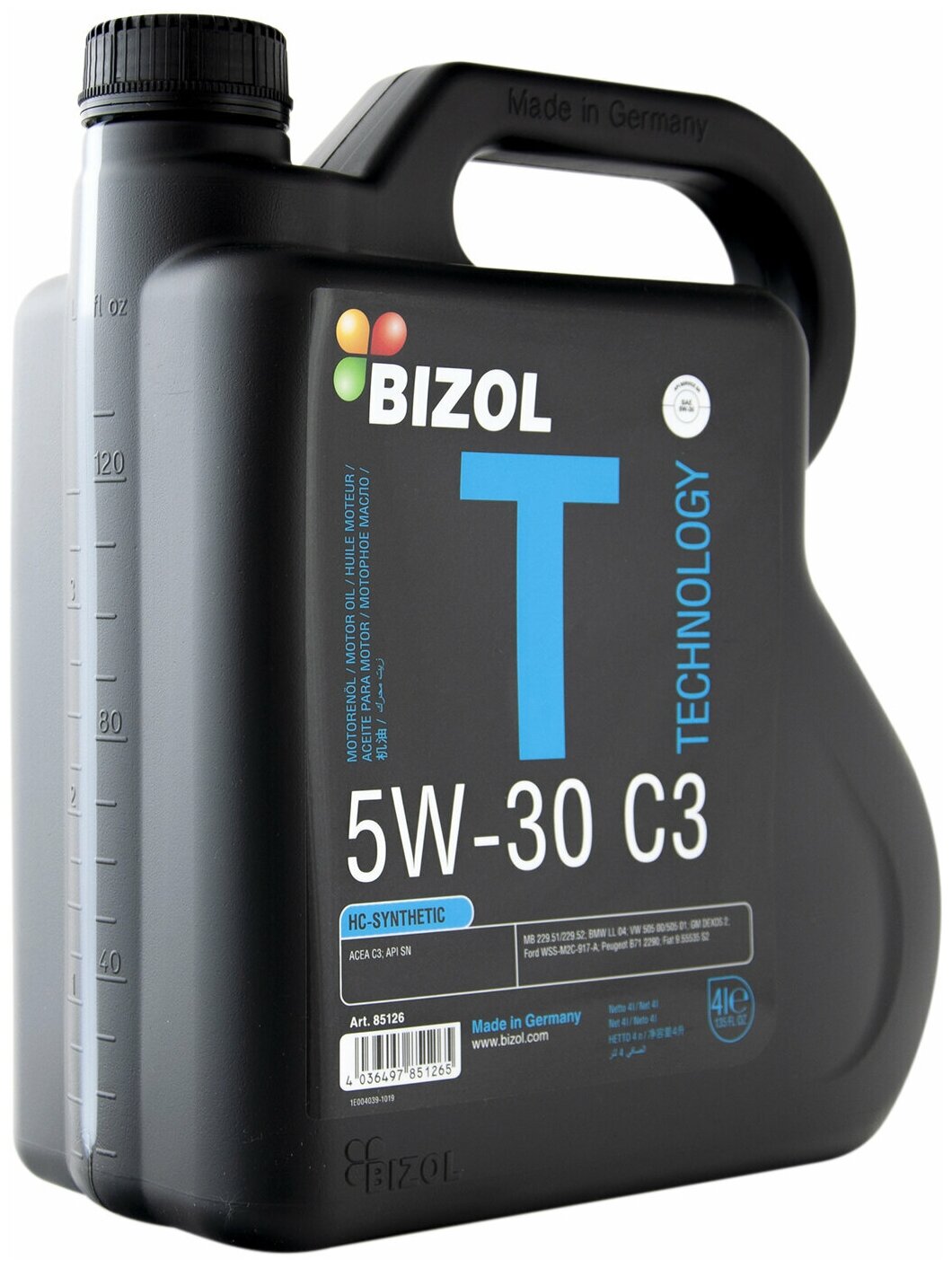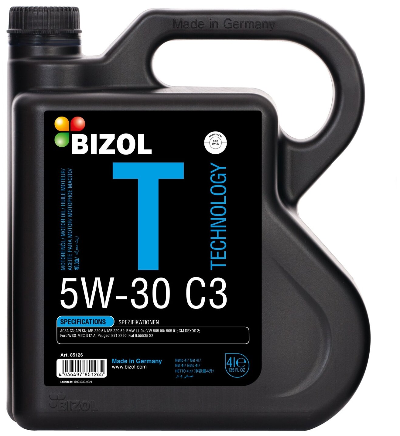 SAE viscosity grade: 5W-30, oil type: synthetic, HC-synthetic, Synthetic, synthetic, fuel type: gasoline, diesel, methane, API standard: SN, ACEA standard: C3, C3, OEM approvals: BMW Longlife-04, FIAT 9.55535-S2, Ford WSS-M2C 917-A, GM Dexos 2, MB 229.51,