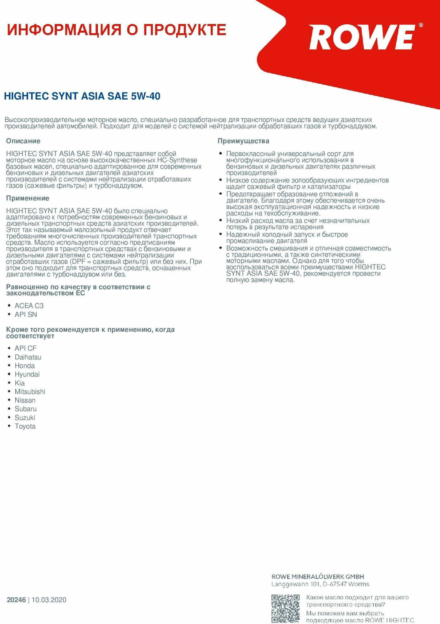 ROWE Hightec Synt Asia SAE 5W-40 200 l