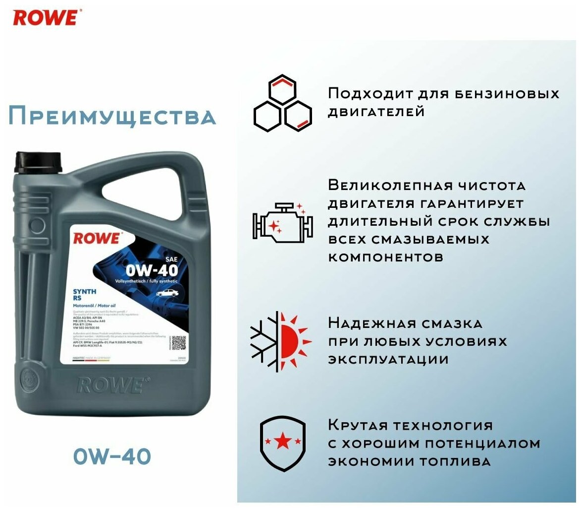 BMW Longlife-01, FIAT 9.55535-M2, FIAT 9.55535-N2, FIAT 9.55535-Z2, Ford WSS-M2C 937-A, MB 229.5, PORSCHE A40, PSA B71 2296, VW 502.00/505.00, Ford WSS-M2C937-A