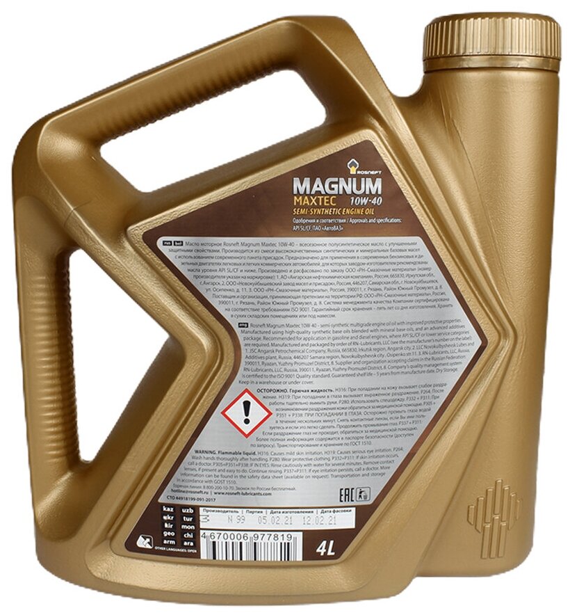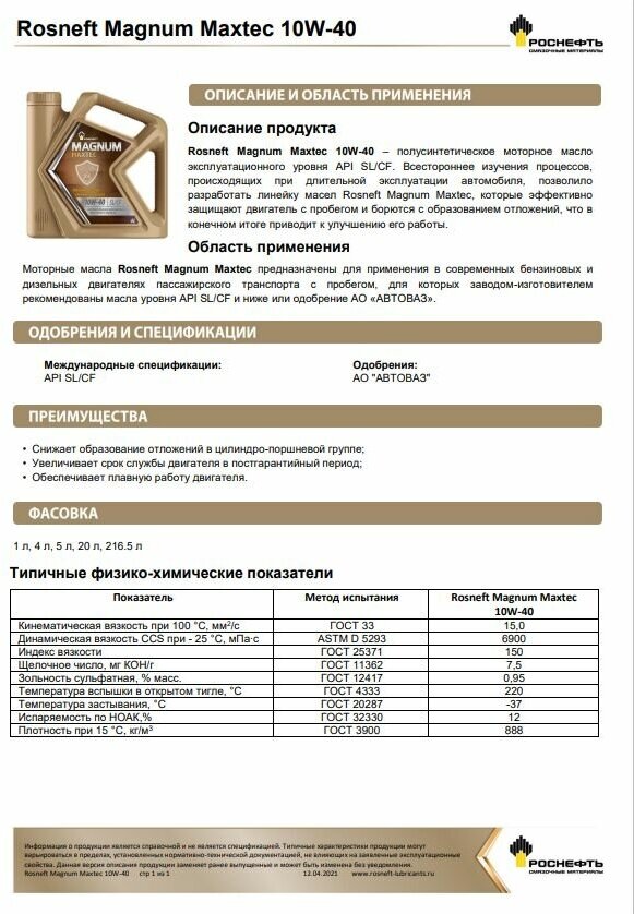 Rosneft Magnum Maxtec motor oils are intended for use in modern gasoline and diesel engines of passenger vehicles with mileage, for which the manufacturer recommends oils of API level SL/CF and lower