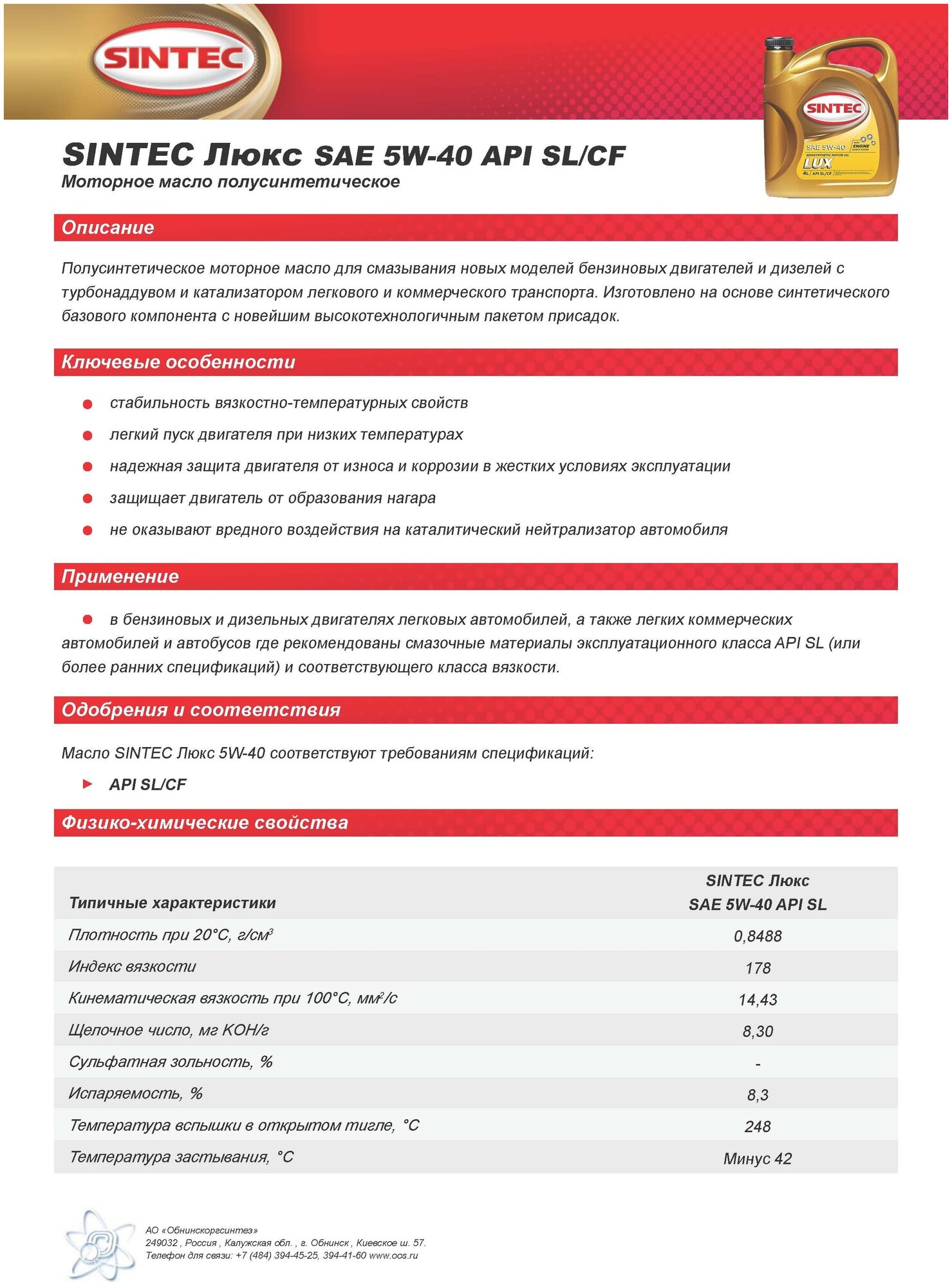 SINTEC LUX 10W-40 SL/CF 5 l.